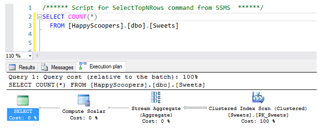 예를 들어 SELECT COUNT (*) FROM Products를 수행하면 내 계획이 이렇게 생겼습니다.