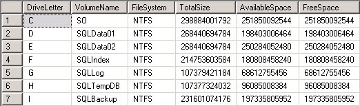 INSERT INTO @DriveList ( [DriveLetter],[TotalSize], [AvailableSpace],[FreeSpace],[FileSystem] ,[VolumeName] )