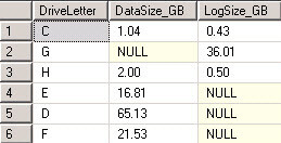 select ISNULL(DF.DriveLetter, LF.DriveLetter) DriveLetter, DF.DataSize_GB, LF.LogSize_GB from (