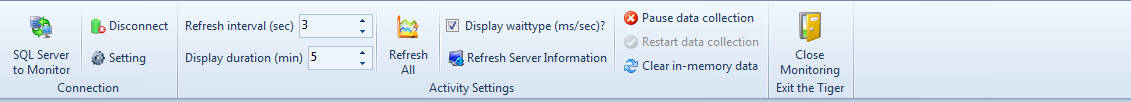 Figure#1: Tool bar of SQL Activity Monitor