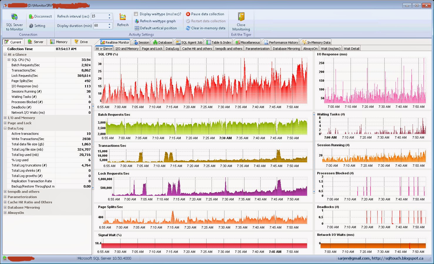 A challenge: Retrieving and visualizing the SQL Server performance data is always a challenge and a tedious task for SQL Server database professionals. Utilizing the Windows PerfMon application is the easiest way to perform this task as well as querying “sys.dm_os_performance_counters” and some other DMVs brings a lot of useful information. Starting from SQL Server 2005, Microsoft has introduced DMV to query various internal metadata directly to explore various health status data. Although collecting and analyzing SQL Server performance data in a regular basis provides trending ability, monitoring real-time performance data is critical to understand an ongoing performance condition that is occurring.