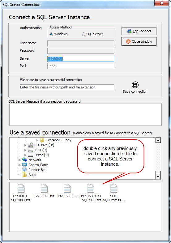 Figure#2: SQL Server Connection dialog